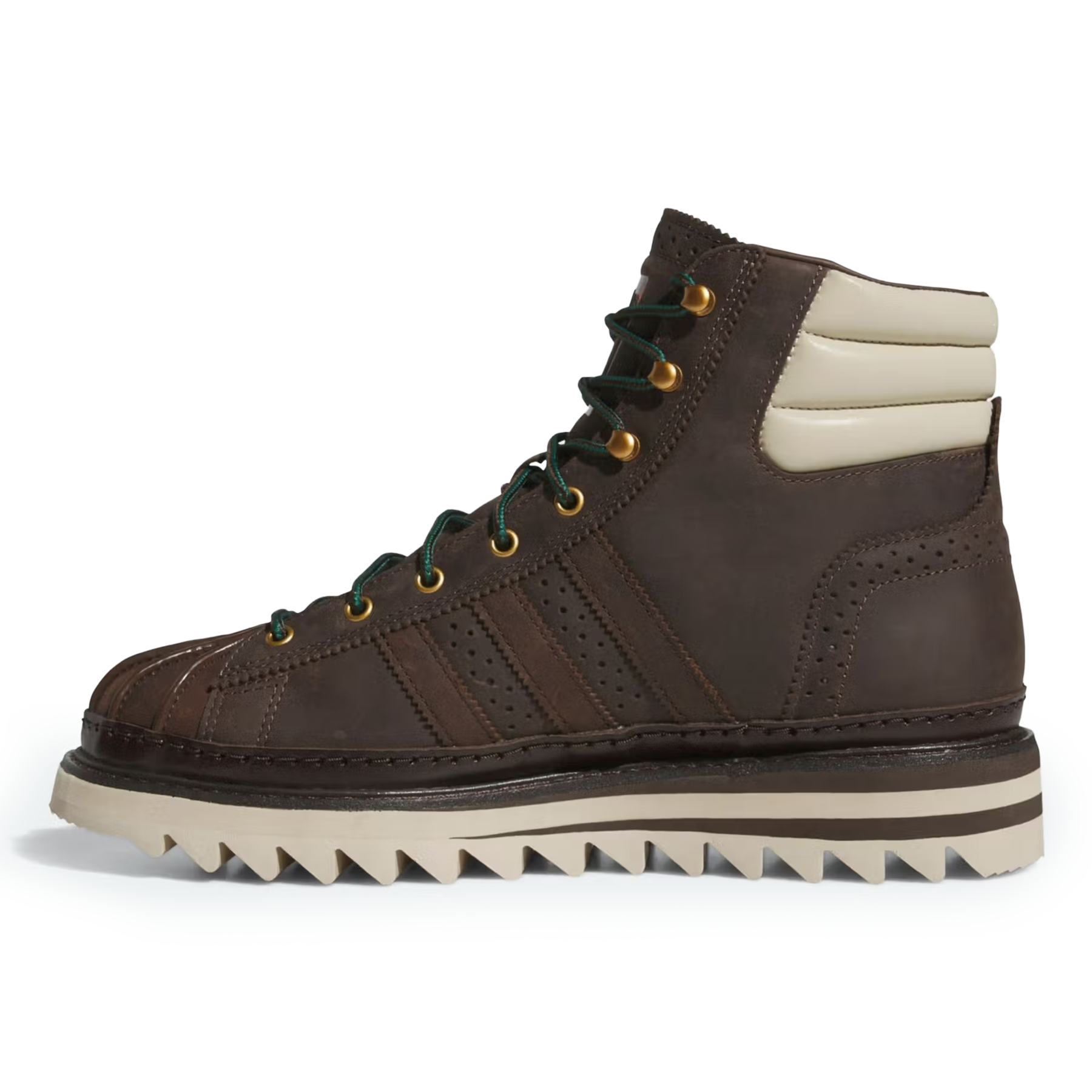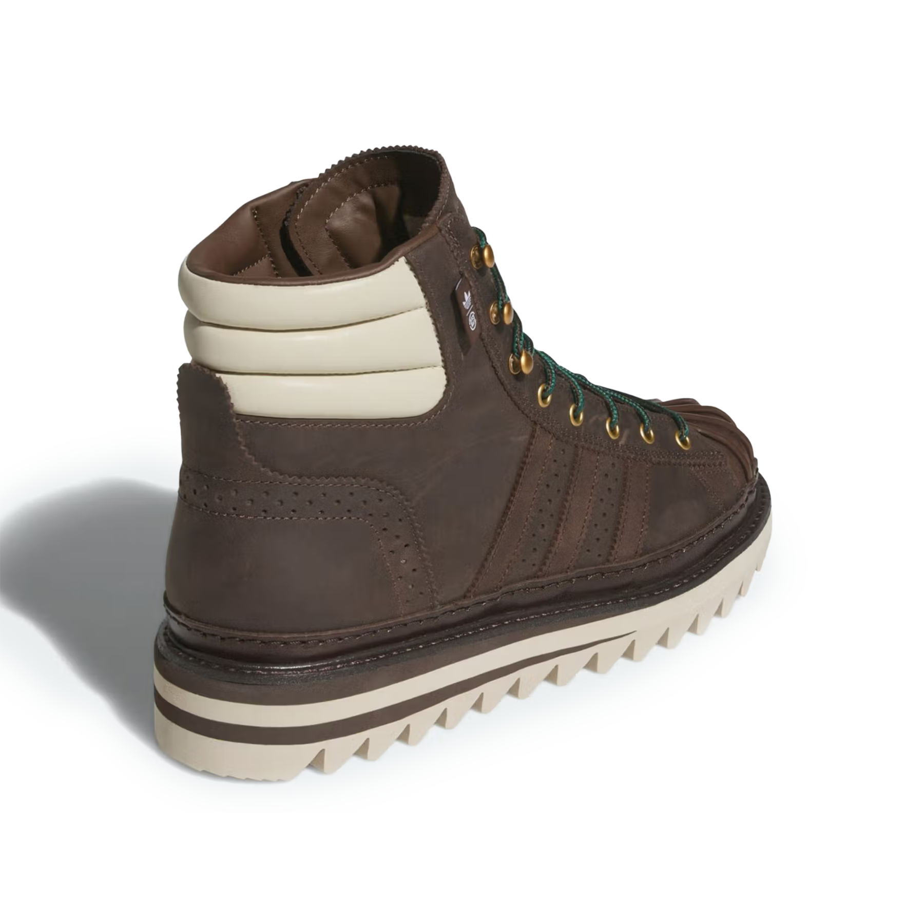 Ahead of the Winter 2025 season, Chen has taken the iconic Adidas Pro Model and transformed it into a boot ready to take on inclement weather. Offered in a "Dark Brown" makeover, the redesign sees high-quality leather and other soft materials across the upper, with iconic shell-toes being reinforced with shiny plastic pieces. Metallic eyelets add another premium touch to the project, which sits atop a dressy, serrated sole unit.