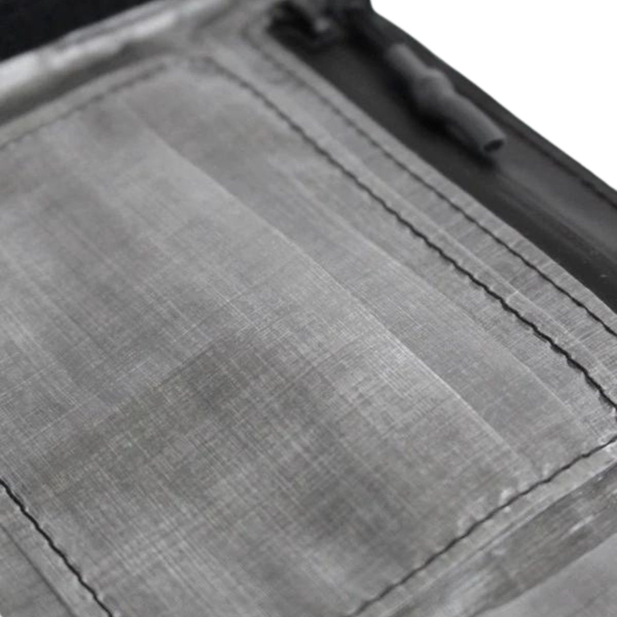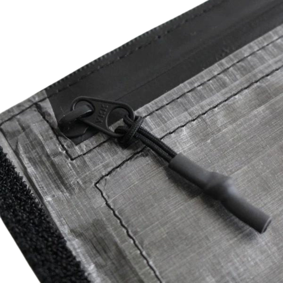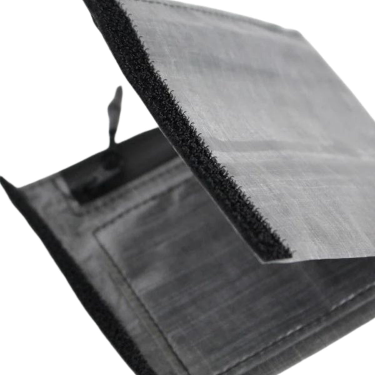 The and wander Dyneema Wallet is made of ultra-thin DSM's Dyneema composite fabric (formerly Cuben Fiber) which is made by laminating Dyneema fibers with UV resin. This fabric is used in high-performance sails for racing boats, it's ultra-lightweight, highly waterproof and tear strength. Dimensions: approx. 10,5 x 10 cm; weight: 20 g. 100% polyethylene Dyneema fabric; made in Japan.