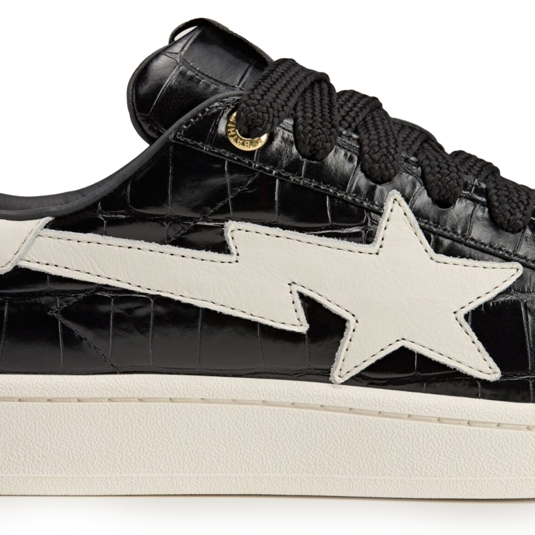 The adidas x A Bathing Ape Campus 00s 'World Cup Pack Black White' elevates the chunky silhouette with luxury. It boasts a black crocodile-embossed leather upper, gold metallic accents, and a BAPE Sta logo on the medial side. Designed for the 2026 World Cup, it fuses high-fashion textures with classic soccer-inspired DNA.